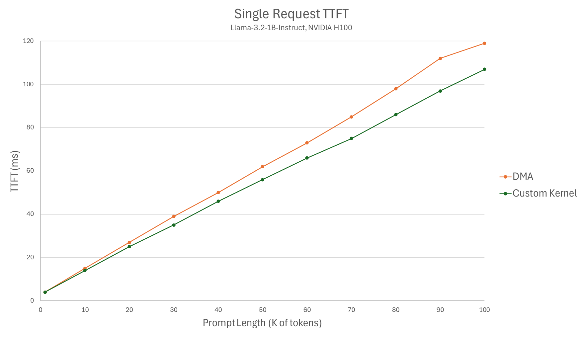 Figure 1: Single request TTFT (Llama-3.1-8B-Instruct, NVIDIA H100).
